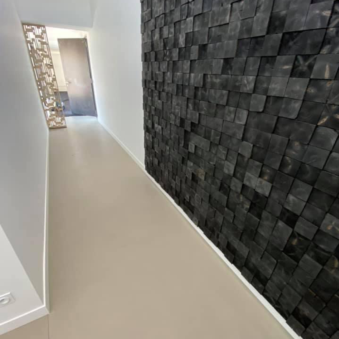 Explorez notre gamme de 40 références de feuilles de pierres véritables, parfaitement adaptées aux salles de bain, que ce soit pour une rénovation ou pour une décoration raffinée.Leur flexibilité permet une application facile sur une fibre de verre, facilitant la mise en place sur des surfaces planes, concaves ou convexes.Les panneaux de bois véritable conçus par Finium, réservés aux espaces secs, présentent un design audacieux et unique. Conçus pour conserver toutes les qualités esthétiques du bois, ces panneaux offrent un aspect artisanal qui met en valeur les nuances et textures du bois naturel. Disponibles en divers styles, allant des motifs géométriques aux finitions en bois brûlé, ces parements apportent un caractère distinctif à vos espaces.Faciles à poser, les panneaux peuvent également bénéficier d’un rétroéclairage pour un effet visuel accentué.
